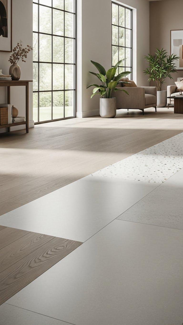 Flooring in pale grey will anchor your neutral scheme while keeping the room feeling light and contemporary; you’ll find options from matte oak planks and wide-format porcelain tiles to textured concrete and engineered vinyl that each bring different warmth, scale, and maintenance profiles.