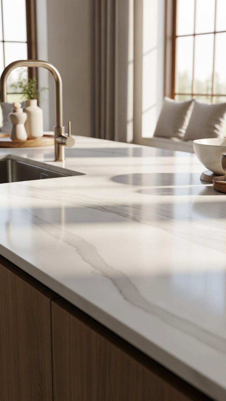 Select slabs with soft veined patterning to add organic movement, letting your furnishings and personal style breathe freely around a calm countertop canvas.