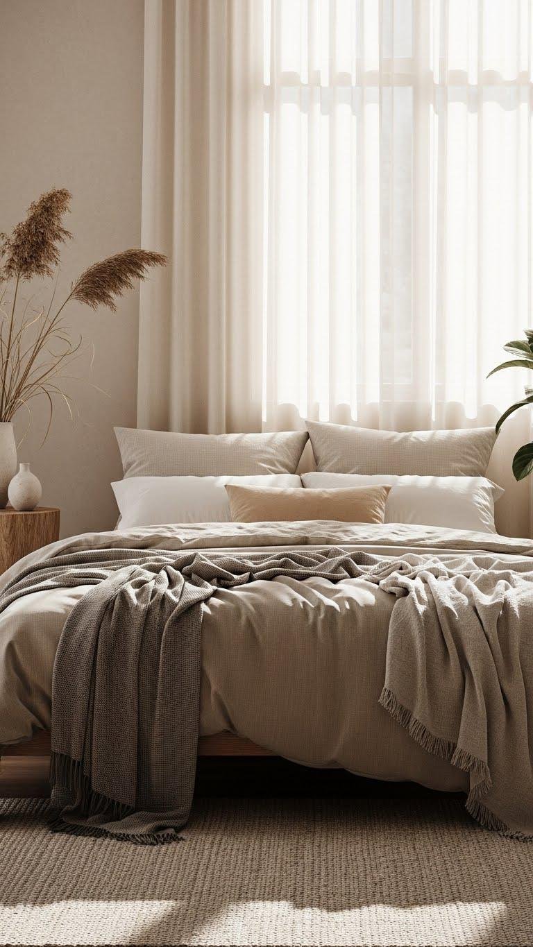A neutral bedscape in shades of beige and sand grounds a bedroom with warm sophistication, giving you a versatile backdrop that feels both current and timeless.