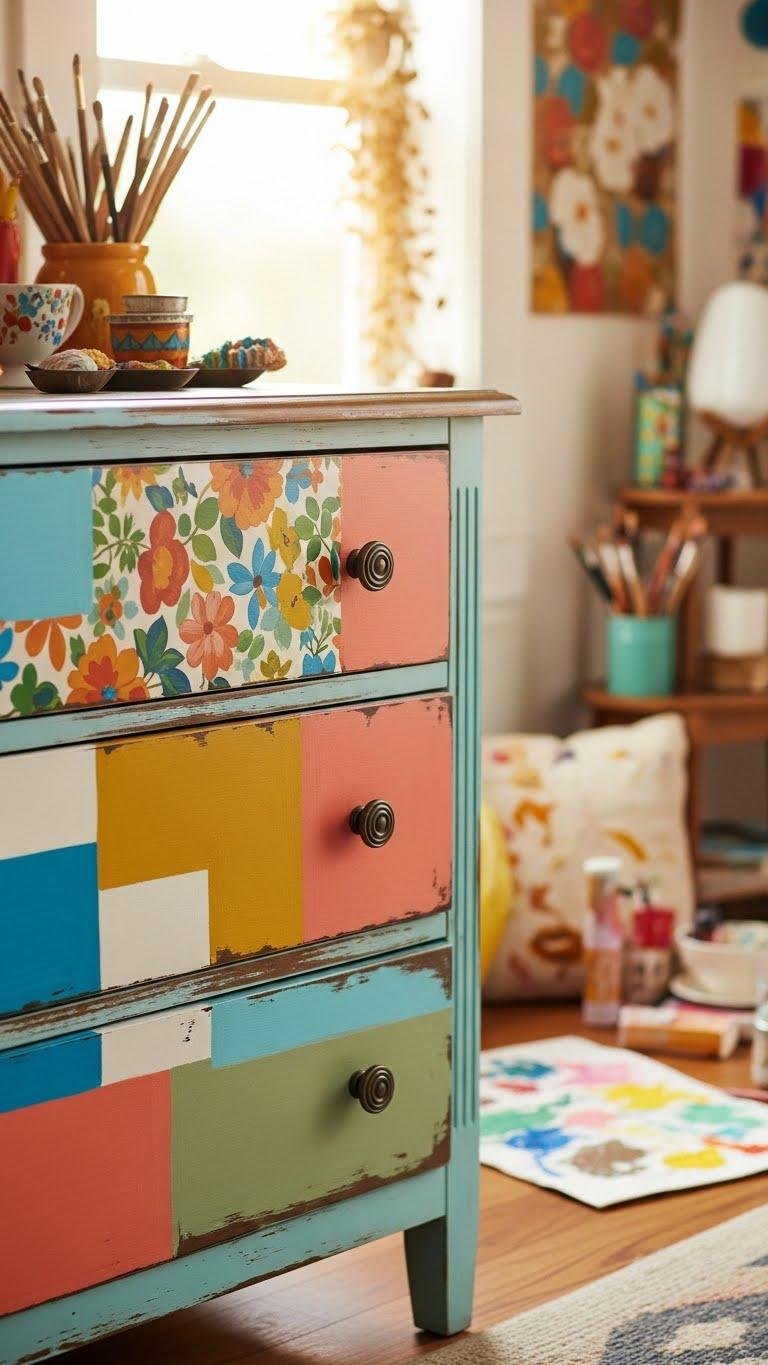Give a tired dresser a bold new life with handpainted finishes that stop guests mid-scroll. You’ll choose Bold finishes and Vintage motifs to create pieces that feel rebellious and free — sun-faded florals, graphic color blocks, or distressed patina. You’ll paint with confident strokes, mix unexpected palettes, and let each piece announce itself, turning ordinary furniture into liberated focal points you’re proud to show off.