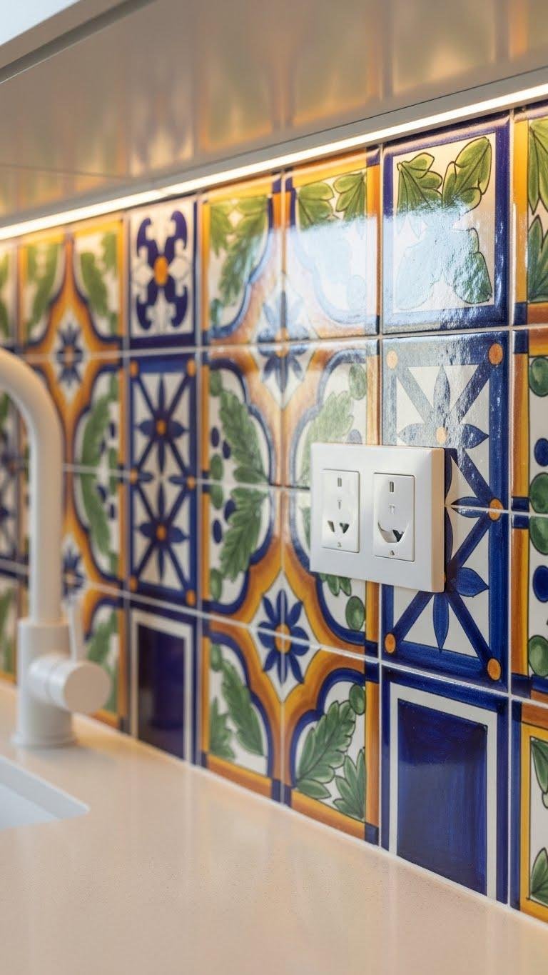 If copper’s warm glow set the mood, Mexican tile brings bold pattern and playful color to your backsplash, turning a practical surface into an expressive focal point.