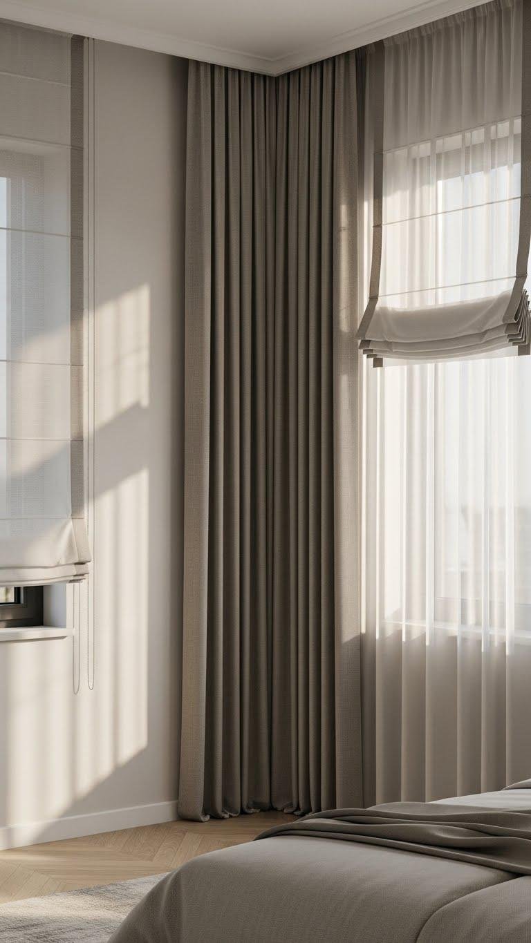 By layering lightweight sheers with heavier drapery, you’ll get both soft daylight and true privacy while adding depth and texture to the room.