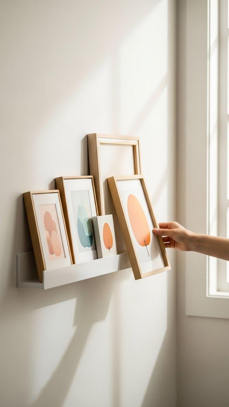 Use magnetic frames and floating shelves for effortless swaps, keep a restrained palette, and let negative space empower your changing story.