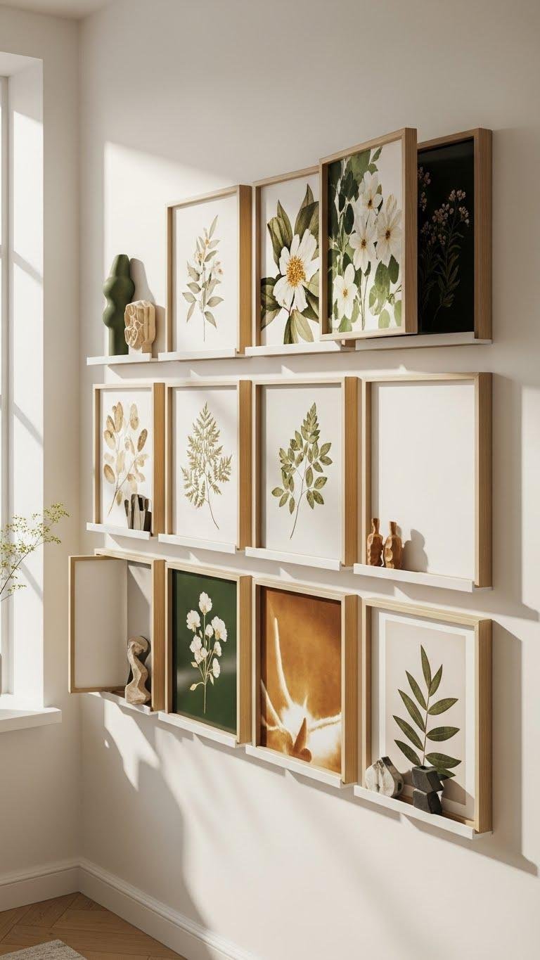 Think of a modular gallery wall as a living canvas you can rework season to season: start with a grid of interchangeable frames or ledges that give you the structure, then swap in artworks, botanicals, or small objects to echo the season’s mood.