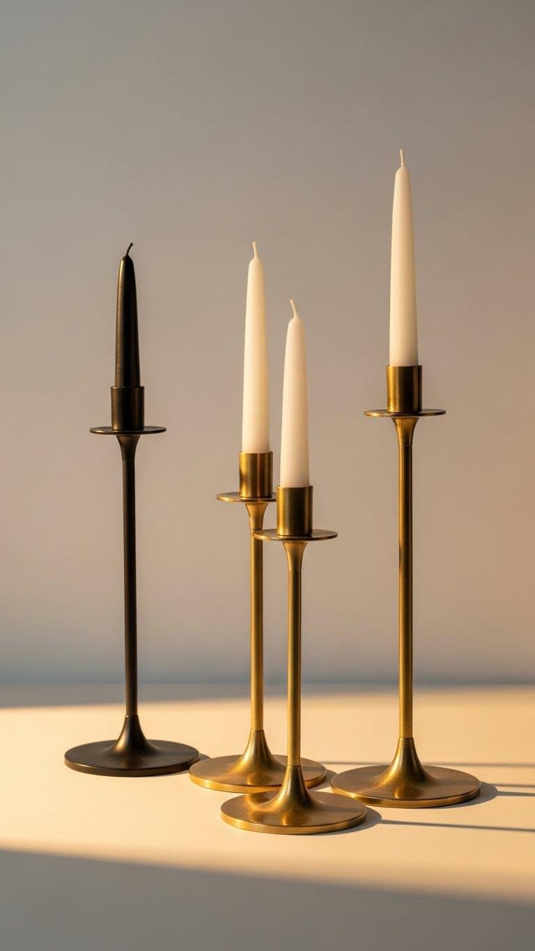 Grouping three candlesticks creates an instant sculptural moment that feels both deliberate and effortless; you’ll want to vary heights and finishes so the eye moves smoothly across the display.