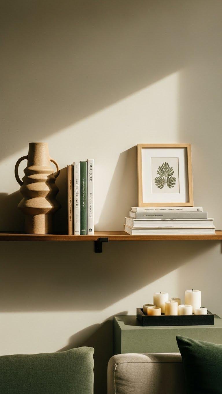 When you lean a framed print or a stack of books against the wall and layer smaller objects in front, you create depth without clutter—books act as both color and podium, while art anchors the composition and invites the eye to move. Let books leaning read like deliberate gestures; pair with layered art and a single sculptural piece so each element breathes, guiding your gaze freely.