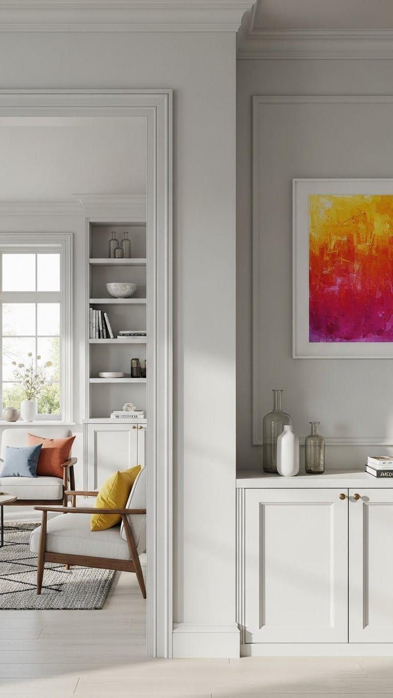 When you paint trim and built-ins the same color as the walls, rooms feel larger and the architecture reads as a unified backdrop rather than a series of interruptions.