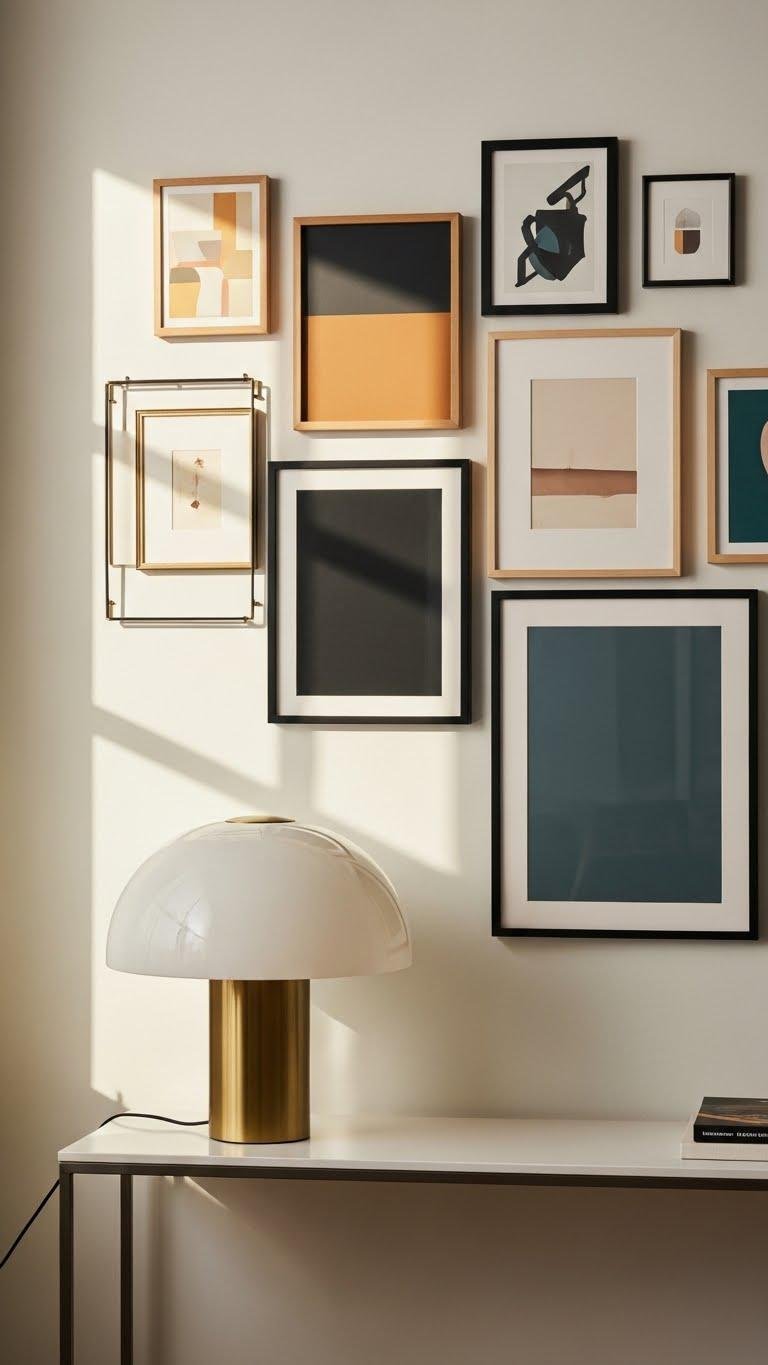 After letting a sculptural lamp set the tone on your console, carry that same intentionality to the walls by hanging art in deliberate, edited groupings that feel curated rather than cluttered.