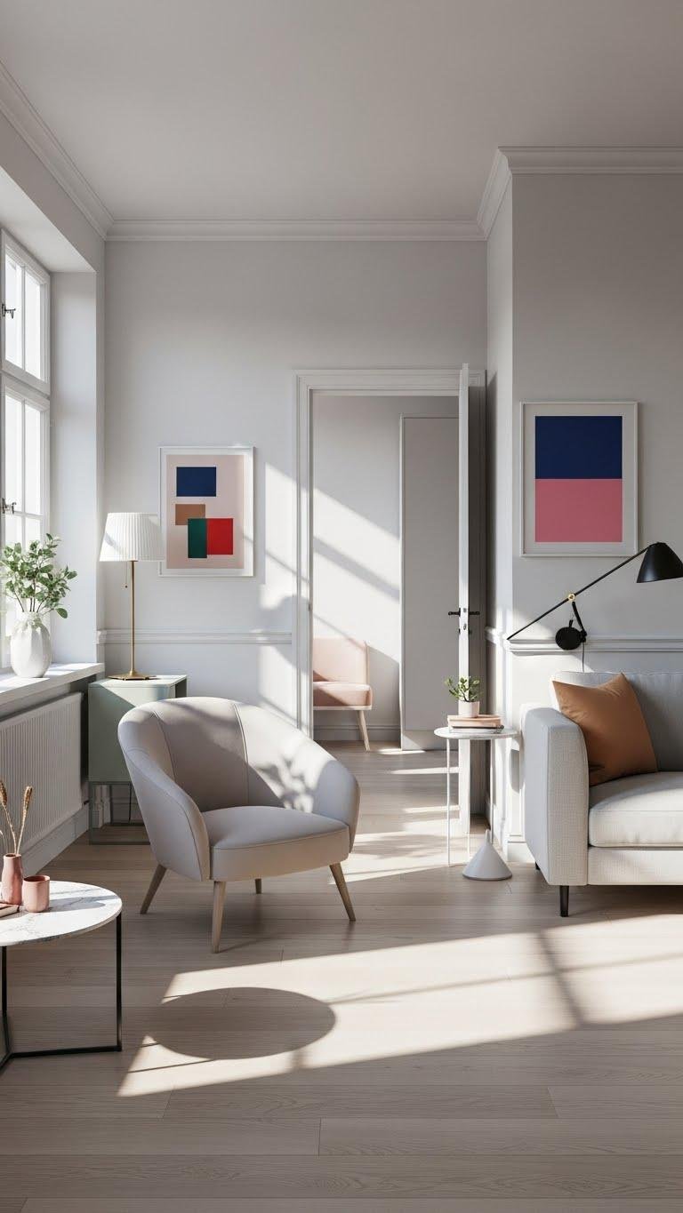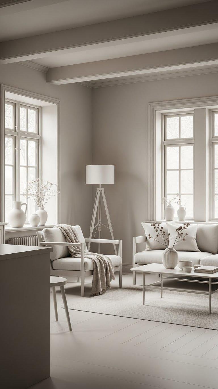 When you keep trim and baseboards close in tone to your walls, the room reads larger and calmer because your eye isn’t stopped by sharp lines. Choose matte trims or a low-profile finish with a subtle sheen to blur edges and let light flow.
