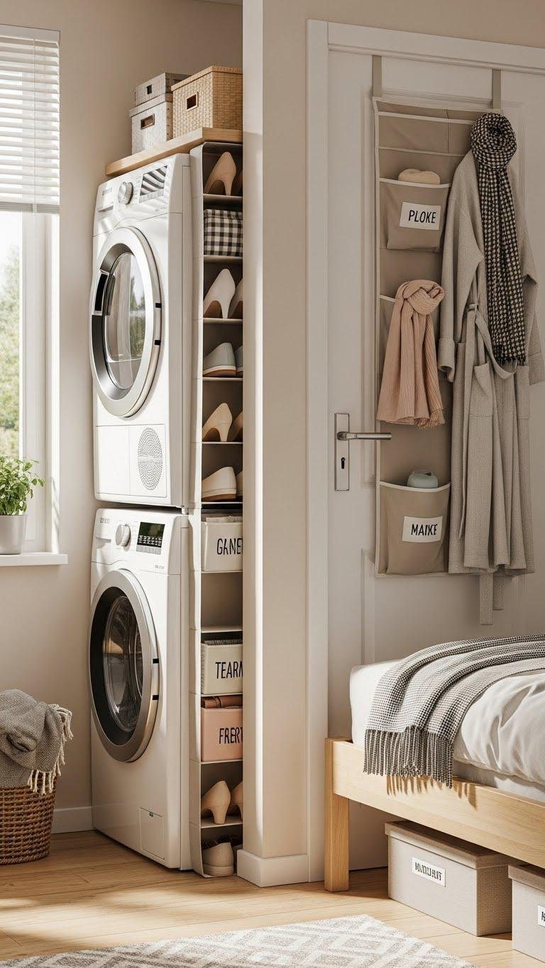 You can tuck narrow shoe organizers beside washer stacks, under beds, or along hallways to free floor space.