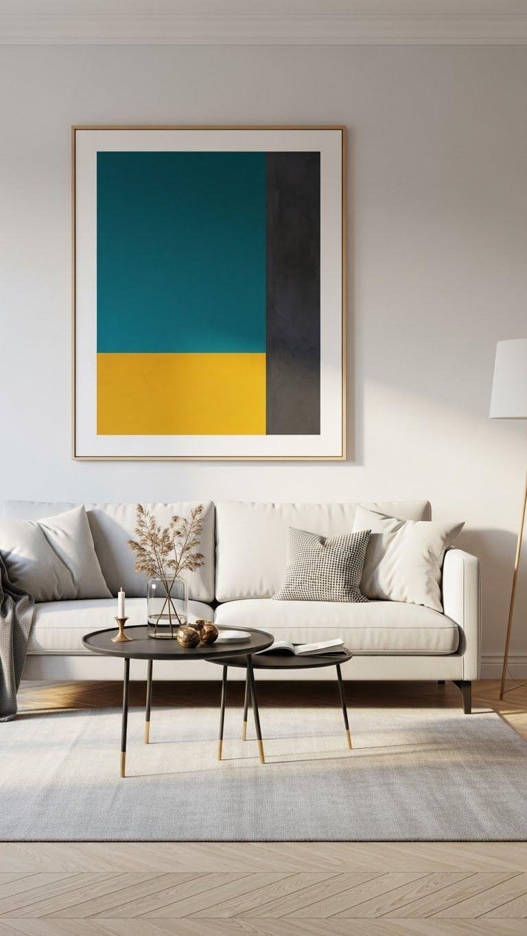 Choose one bold, larger-scale piece instead of clustering many small artworks — it anchors the room, creates a focal point, and makes a small space feel more cohesive and intentional.