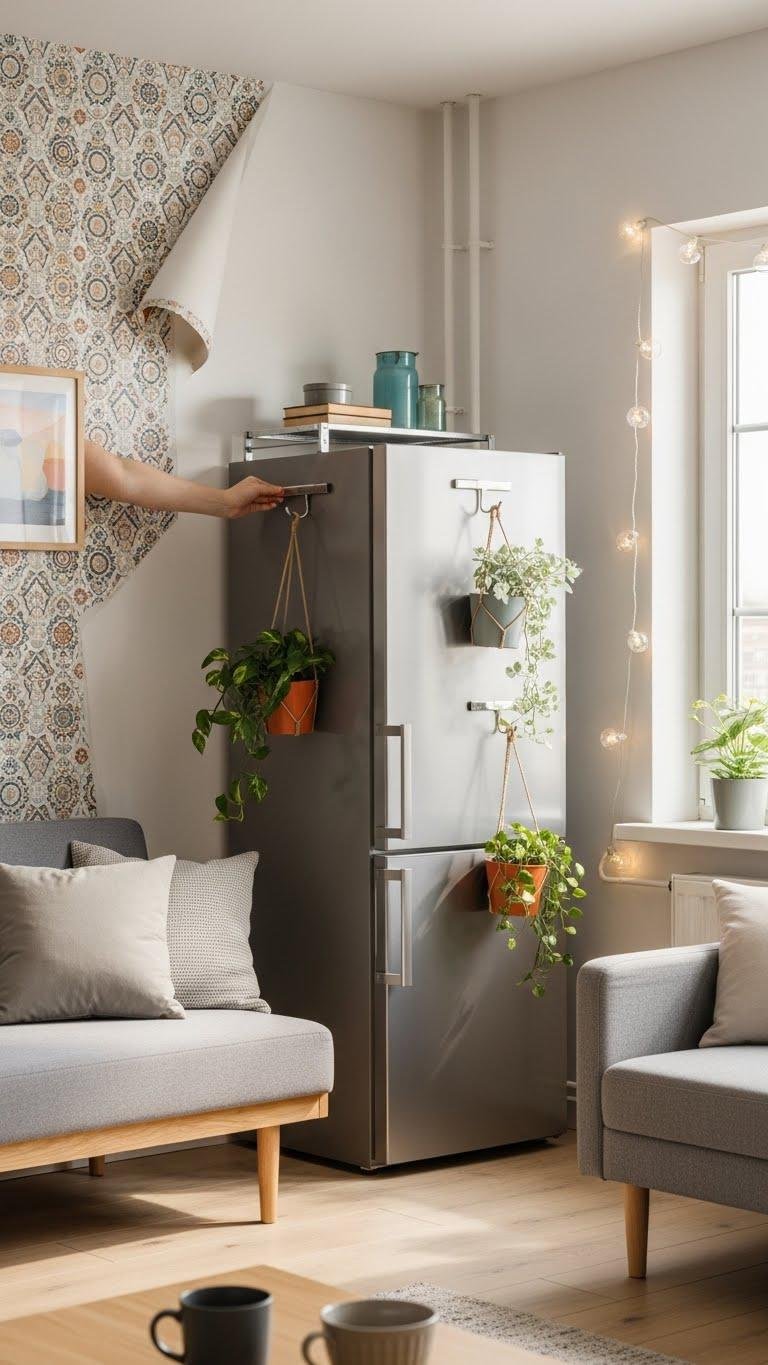 Use magnetic hooks on appliances and metal surfaces to hang plants, art, or lights without drilling. These choices keep your space flexible, stylish, and fully portable.