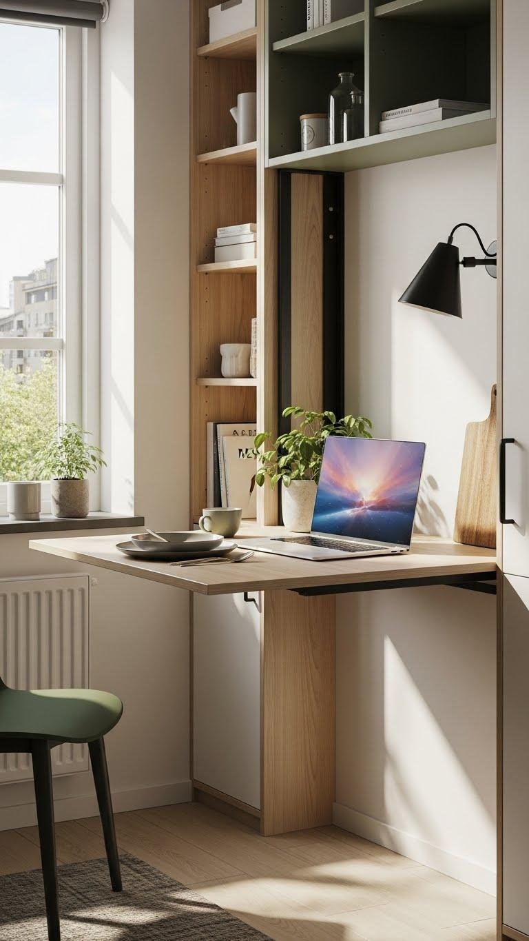 For tight spaces, folding or wall-mounted tables give you full function without the footprint: you can fold them down for dining, work, or hobby projects and tuck them away when you need open floor.