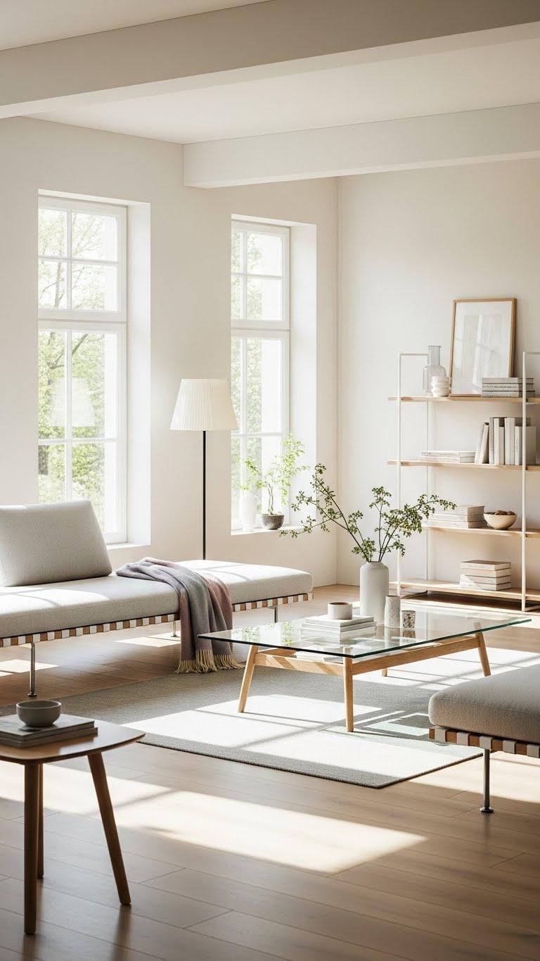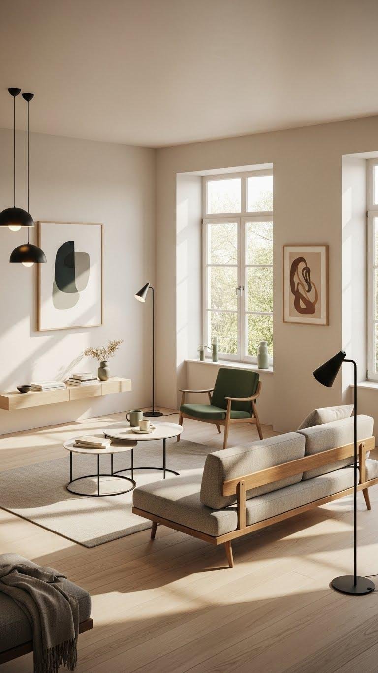 This layout invites movement, feels liberated, and lets light flow around each element for airy, deliberate living.