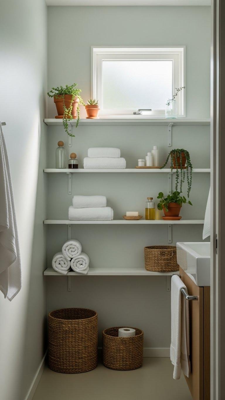 You’ll create a calm niche display for toiletries and decor, keeping counters clear and movement easy.