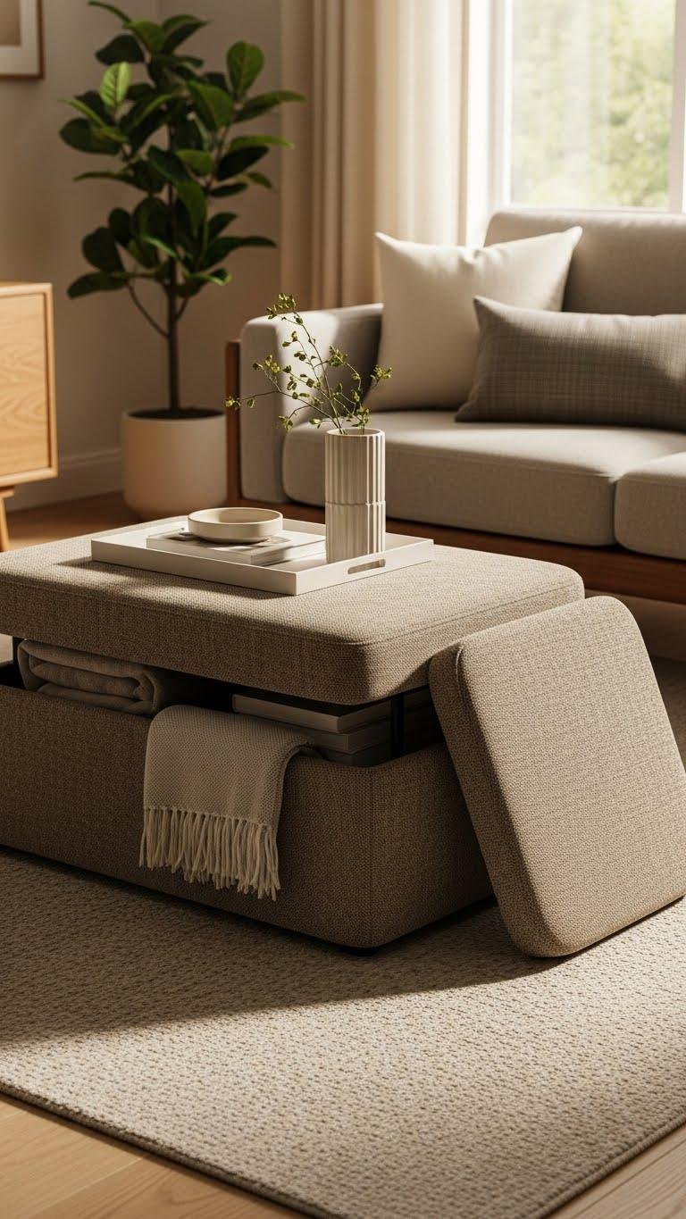 Multi-Functional Ottoman With Hidden Storage