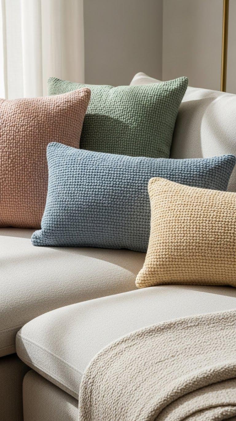 Bouclé Accent Pillows in Muted Pastels