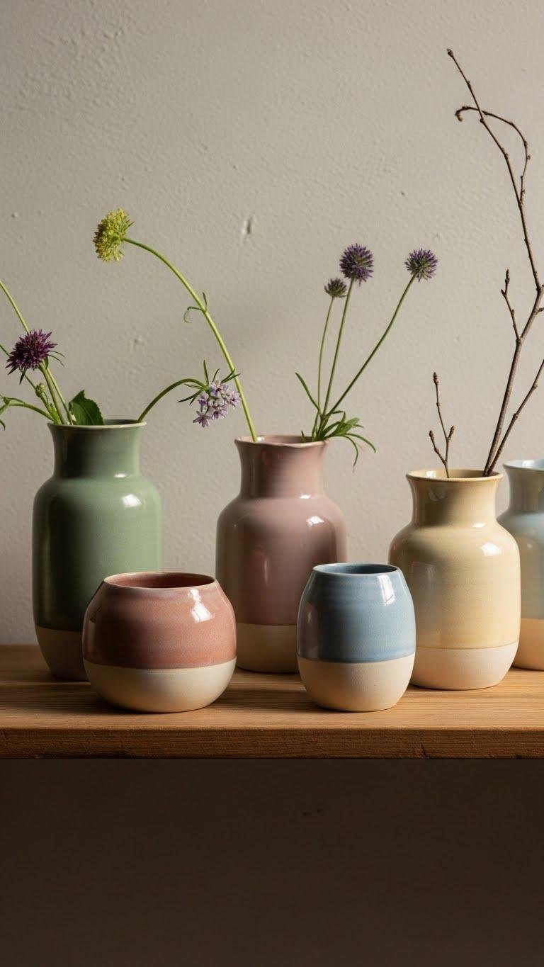 Hand-Thrown Ceramic Vases in Muted Pastels