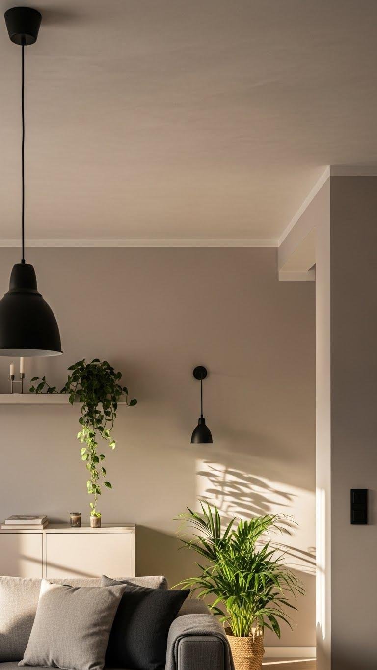Pair soft taupe walls with a muted plaster ceiling for an airy, unfussy feel. You’ll create calm continuity that lets fixtures and plants stand out.