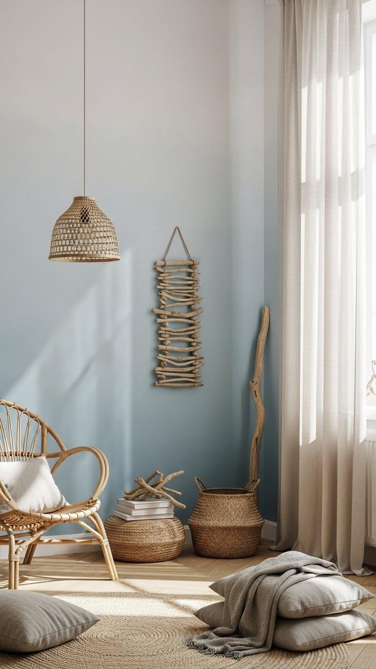 Thinking of a simple refresh? You’ll paint walls in soft pastel blue to open the room, creating a calm sky gradient that lifts mood and visual space.