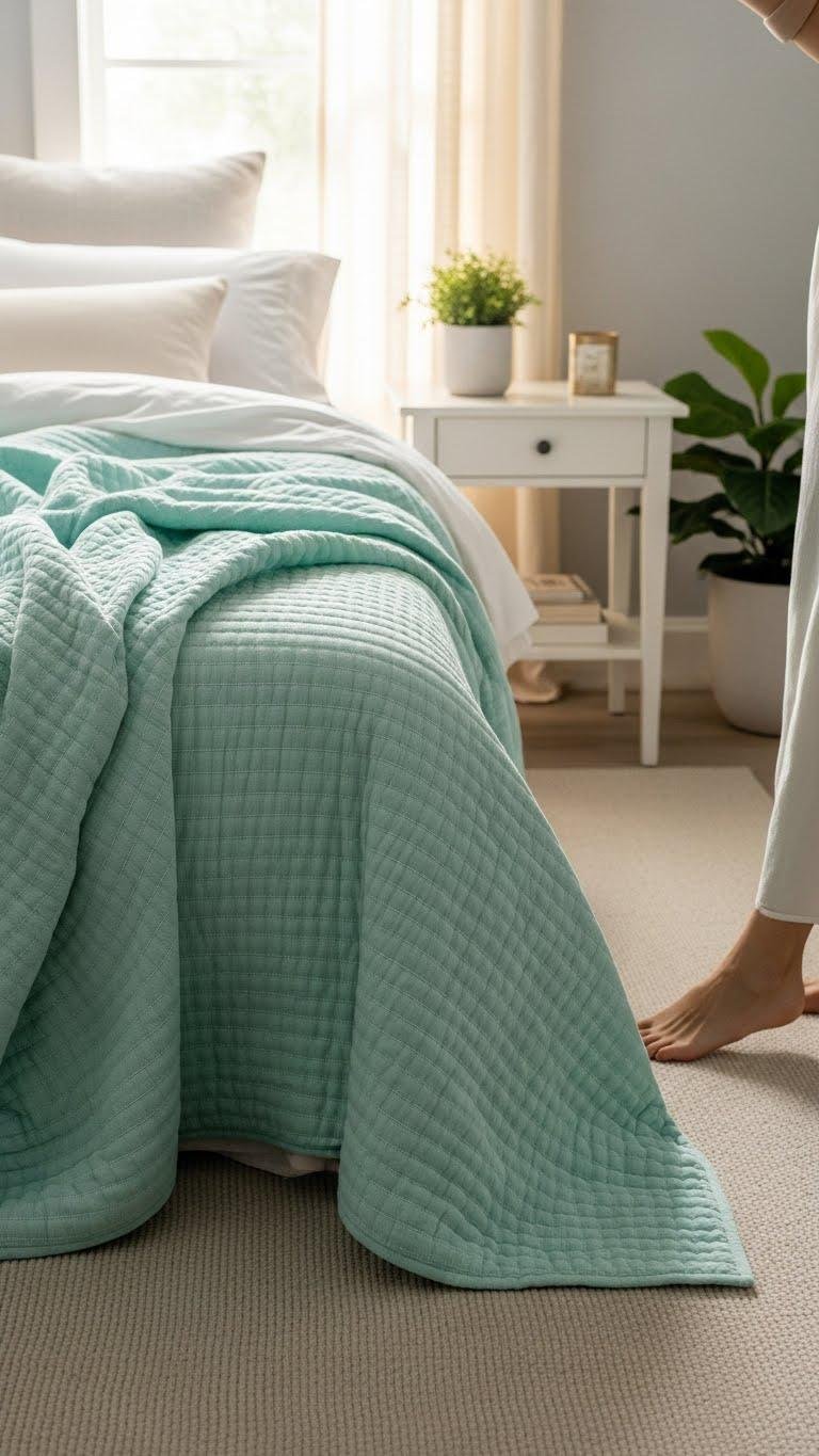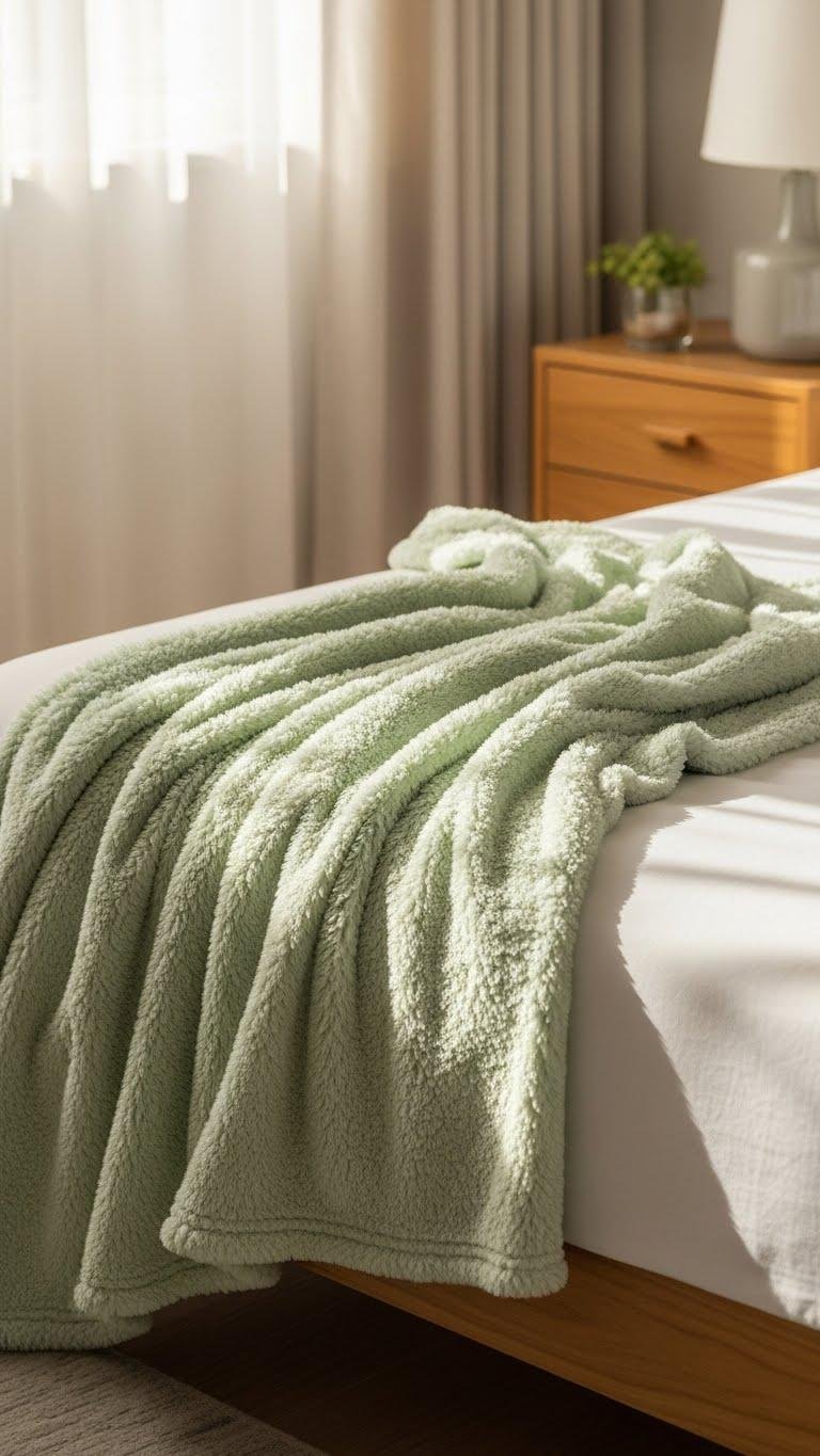 One soft pastel-green throw can transform your bed into a cozy, spring-ready focal point without overwhelming the room.