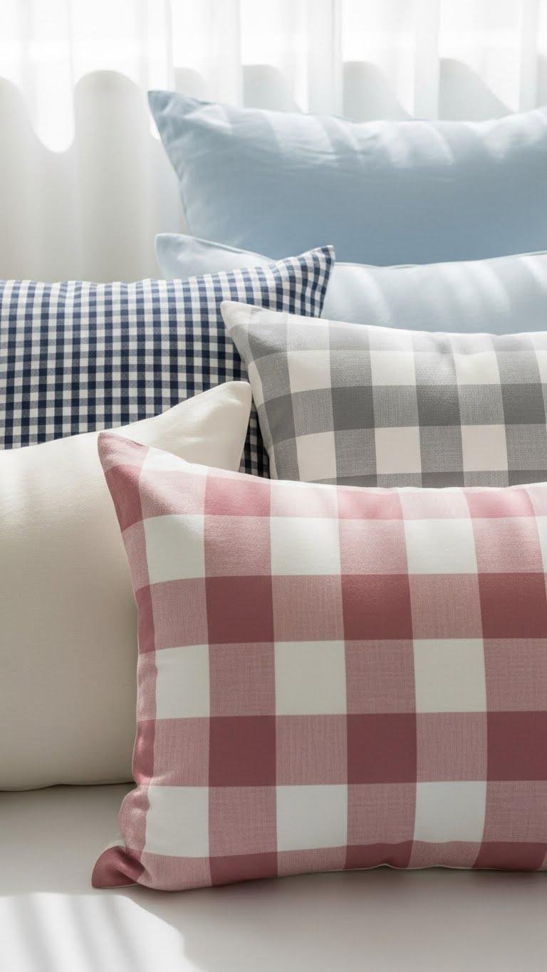 Often, a few gingham throw pillows quietly refresh a bed, adding upbeat pattern and crisp structure without overwhelming the room.