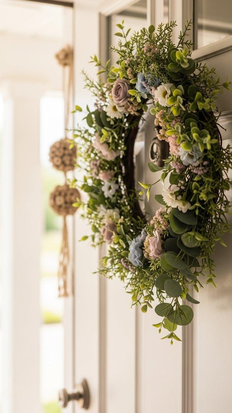 Bring a fresh, inviting touch inside by placing a spring wreath on the interior side of your front door; it greets guests as they step in and sets the tone for the whole home.