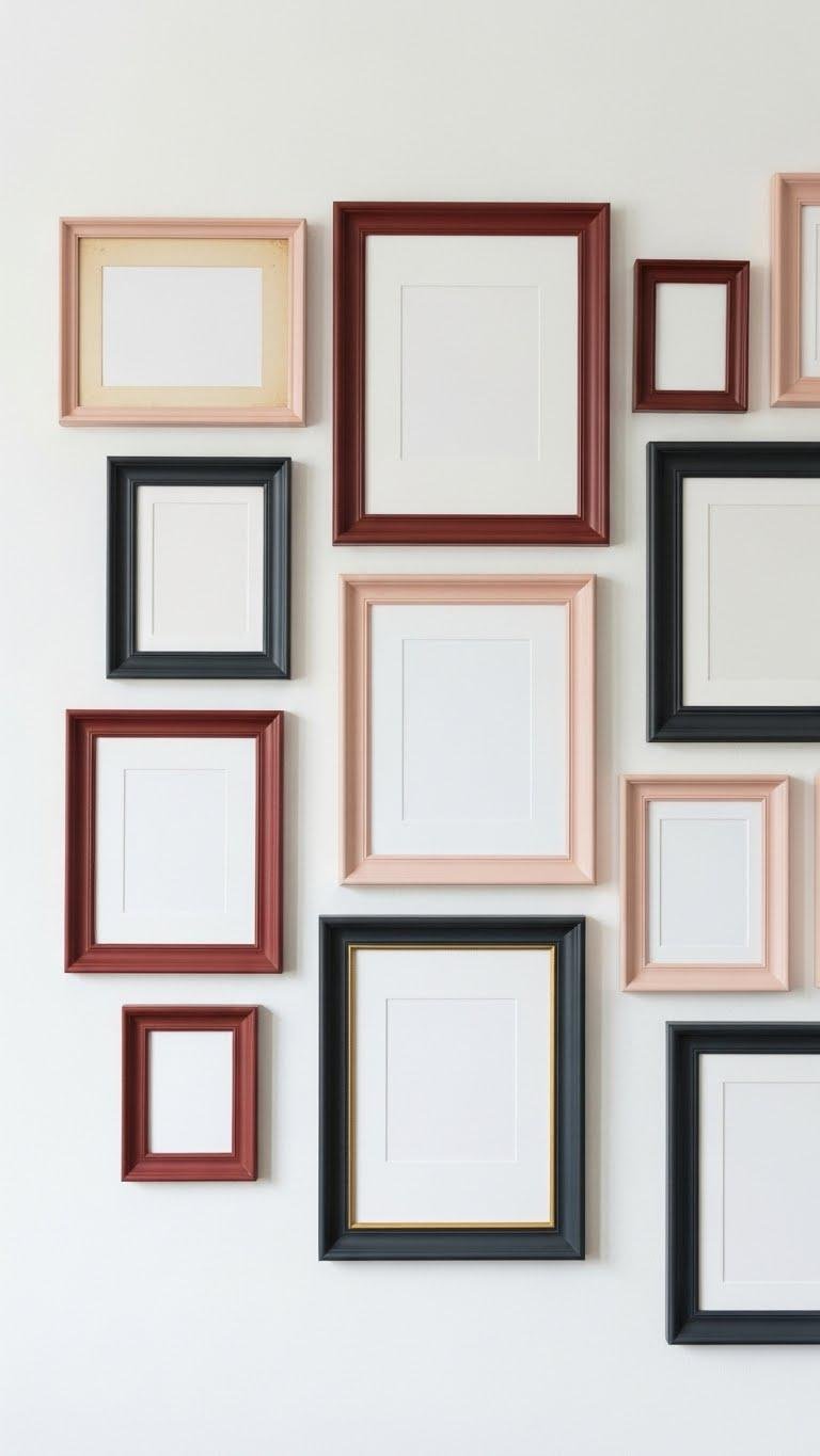 You’ll mix antique photo matting with modern finishes, using muted reds, blush, and charcoal for color blocking frames that read sophisticated.