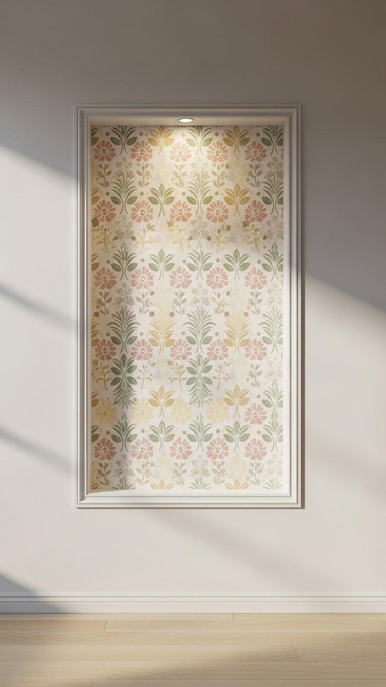 Layer a stenciled floral pattern panel to bring soft, intentional charm to a pared-back room: you’ll use crisp, repeatable motifs framed within a recessed or raised panel to create a focused artful anchor without overwhelming the space. Choose botanical stencils, subtle hues, and slim moulding; add adjustable panel lighting to enhance texture. You’ll invoke calm, modern freedom while keeping scale and negative space intact.