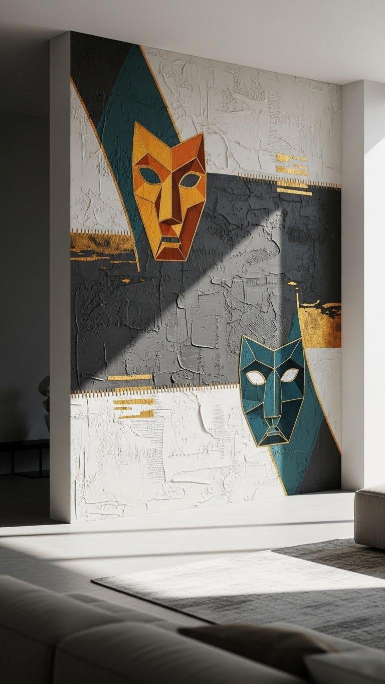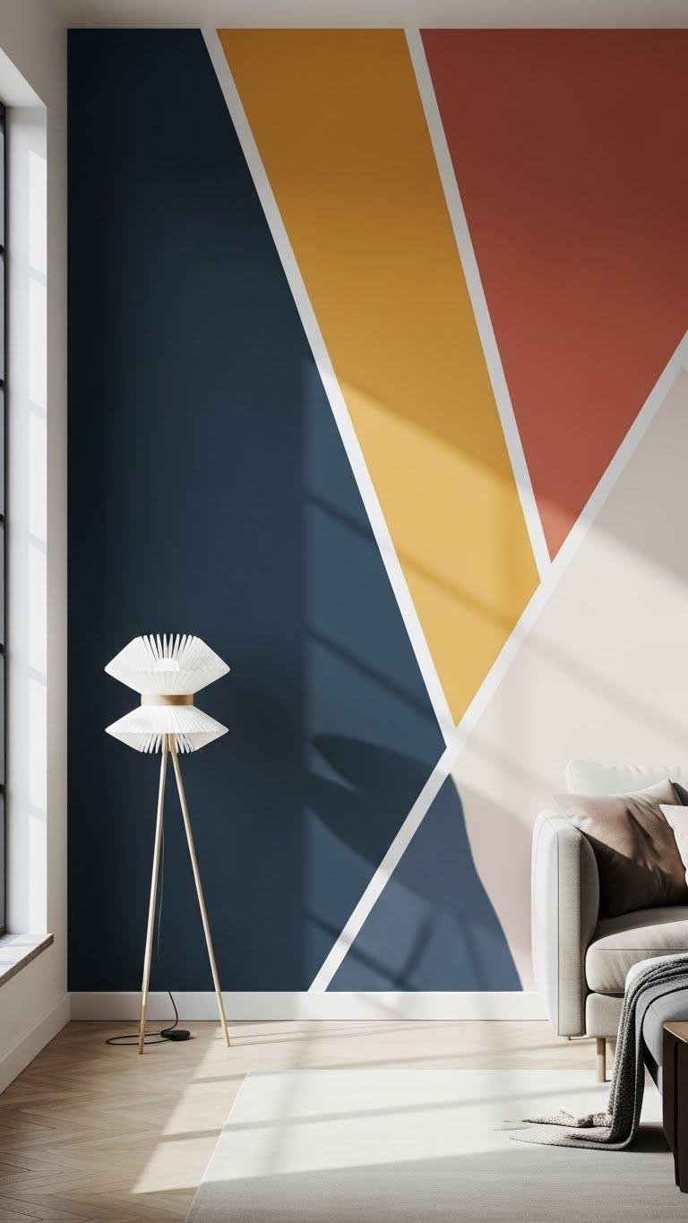 Make a bold statement by painting a color-blocked accent mural that sculpts your room with simple geometric fields and crisp edges. You’ll shape mood and flow with bold geometric forms and contrasting tones, carving visual freedom into a wall. Choose scale and placement to expand or anchor space, keep lines clean, and let color-driven architecture define a liberated, modern interior.