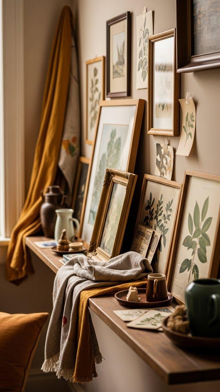 After you’ve enjoyed the layered warmth of vintage textiles and small ephemera, a picture ledge gallery offers a simple way to keep that curated look fresh.
