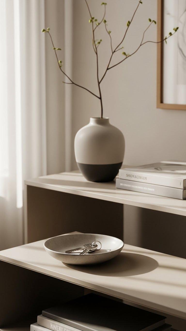 If you want daily surfaces to feel deliberate, clear the ones you touch most and keep them intentionally pared back. You’ll practice daily clearing as a small ritual: a shallow bowl for keys, one curated vase, nothing else.
