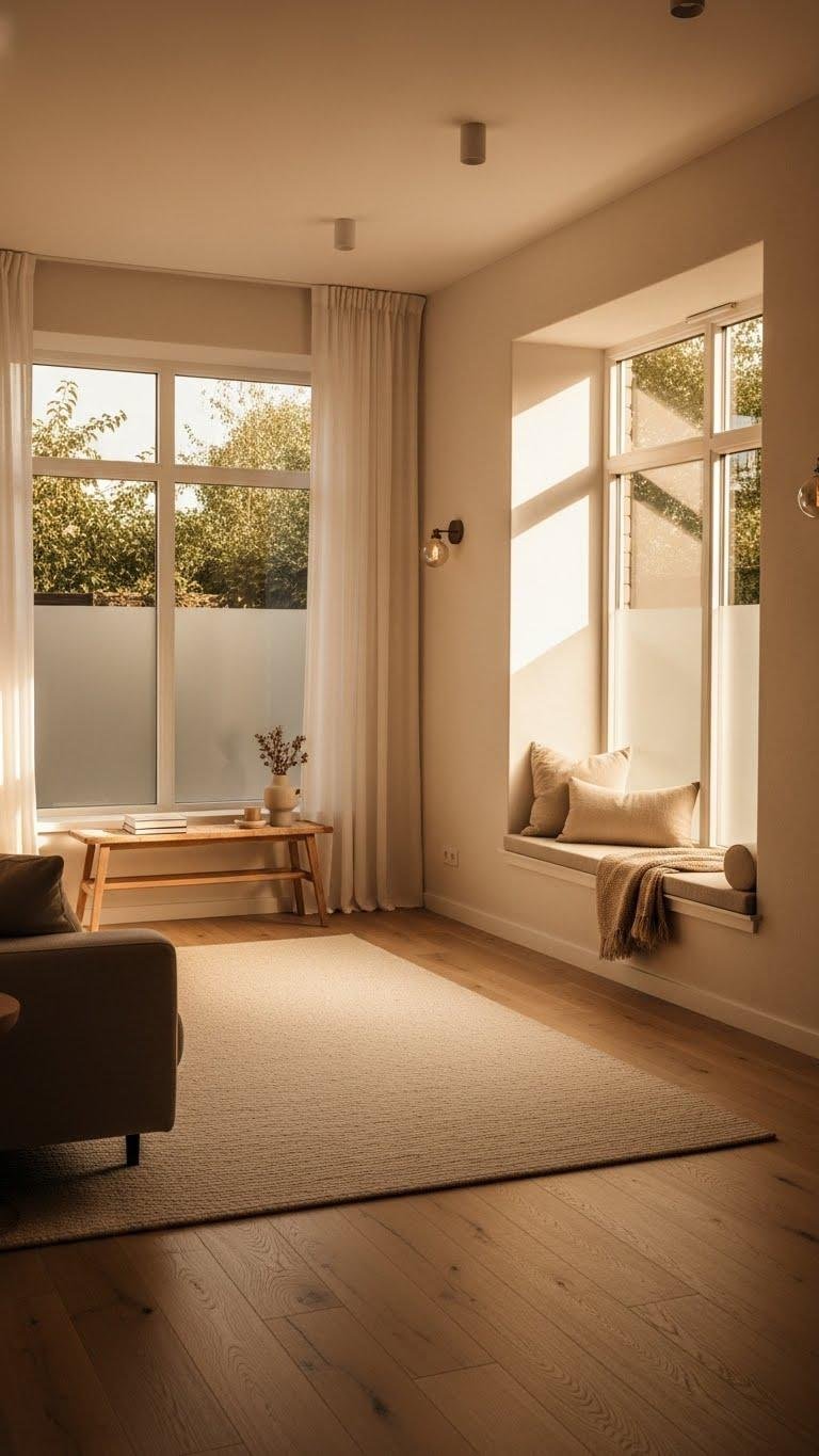 You’ll create airy depth, subtle glow, and a liberated, uncluttered vibe without extra furnishings.