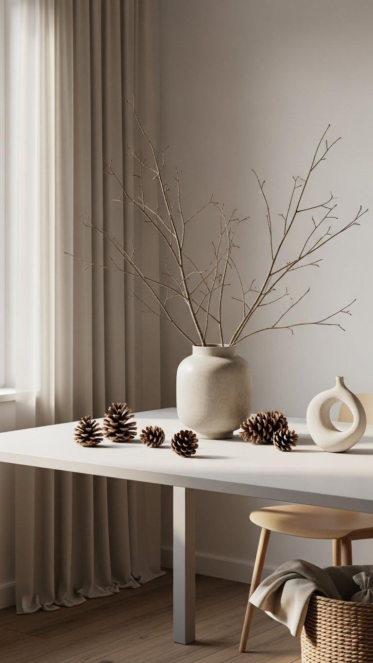 When you pair pinecones and bare branches with clean lines and simple vessels, they add sculptural texture without cluttering your space.