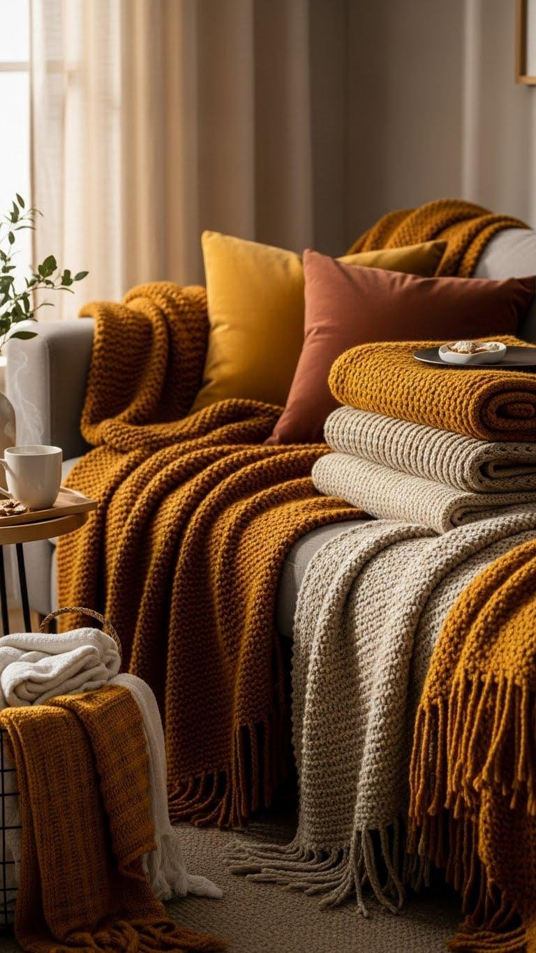 Layer Chunky Knit Throws on Seating
