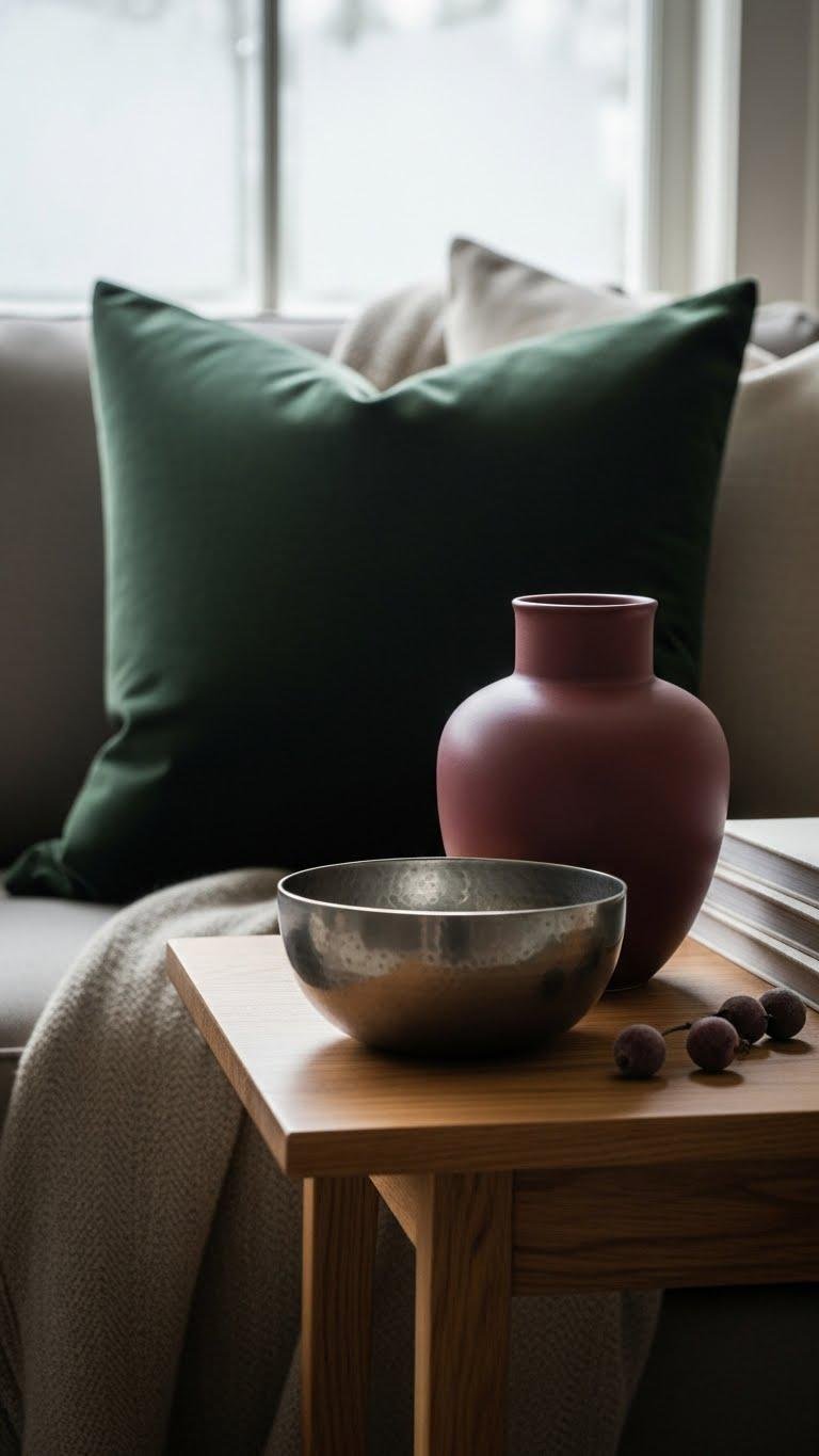 When you want to nod to winter without overhauling your palette, introduce a few low-key accent colors that echo the season’s mood—think deep forest green, muted cranberry, or brushed pewter—applied sparingly to pillows, ceramics, or a single throw.