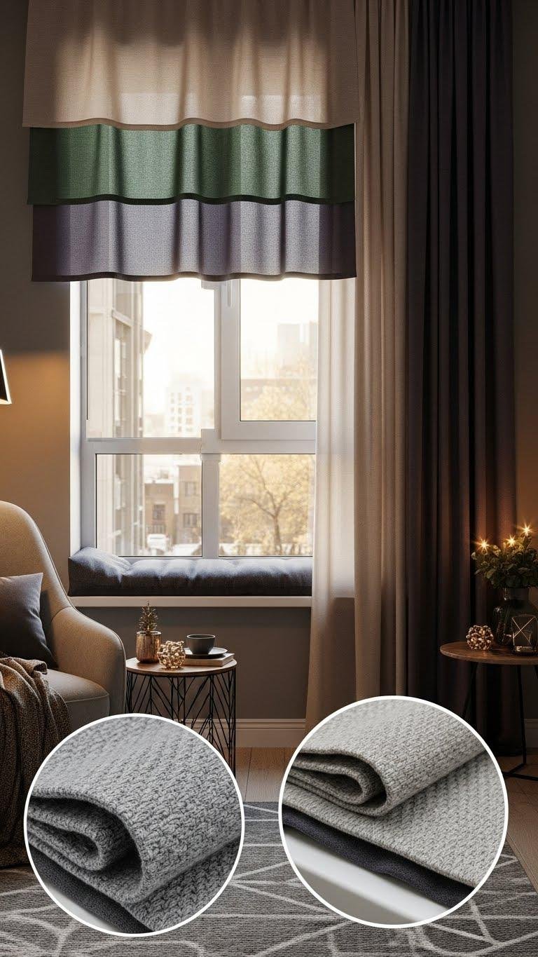 You’ll layer thermal valances, hang floor-length panels, and use draft stopping pads at the sill. That combo looks luxe and keeps you free from chill.